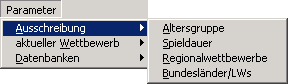 - Altersgruppe ..... Bearbeitung bzw. Ansicht von Berechnungsgrundlagen der Altersgruppen und min./max. Spieldauer pro Altersgruppe
