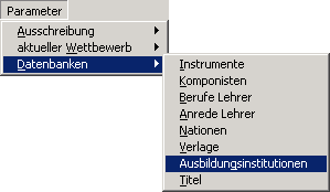 Die zur Auswahl stehenden Ausbildungsintitutionen können hier im Menüpunkt Parameter - Datenbanken - Ausbildungsinstitutionen erfasst und bearbeitet werden.