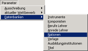 Der Inhalt dieser Auswahlliste kann hier im Menüpunkt Parameter - Datenbanken - Nationen erfasst und bearbeitet werden.