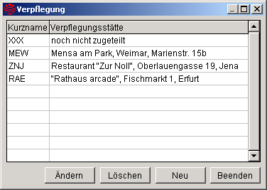 Die hier erfassten Kurznamen der Verpflegungsstätten werden im Register