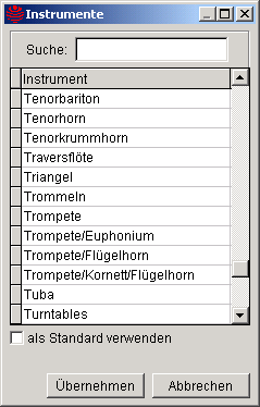 Der Textknopf Instrument ist nur sichtbar, wenn der Satzzeiger auf einem Teilnehmer steht, dem gar kein oder kein gültiges Instrument zugeordnet ist.